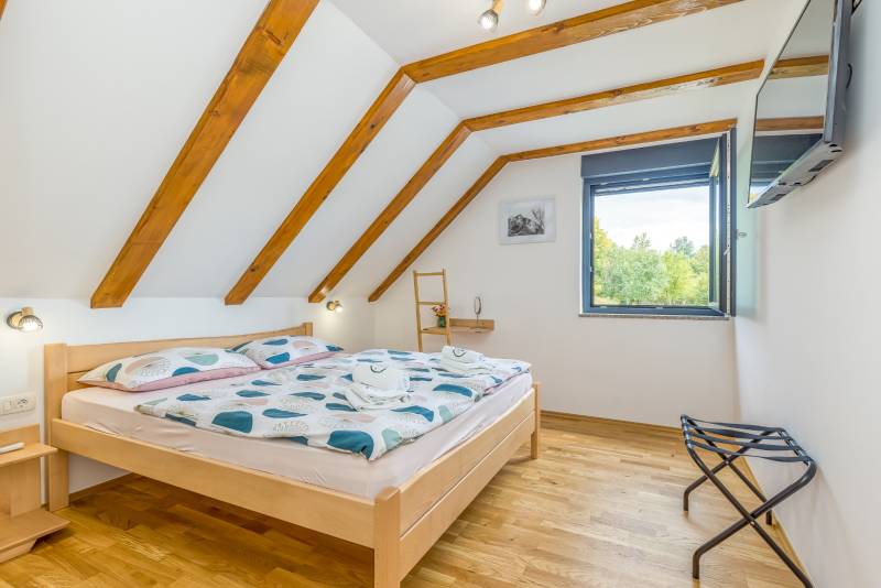 U prizemlju kuće nalazi se i jedna dvokrevetna soba s vlastitom kupaonicom.