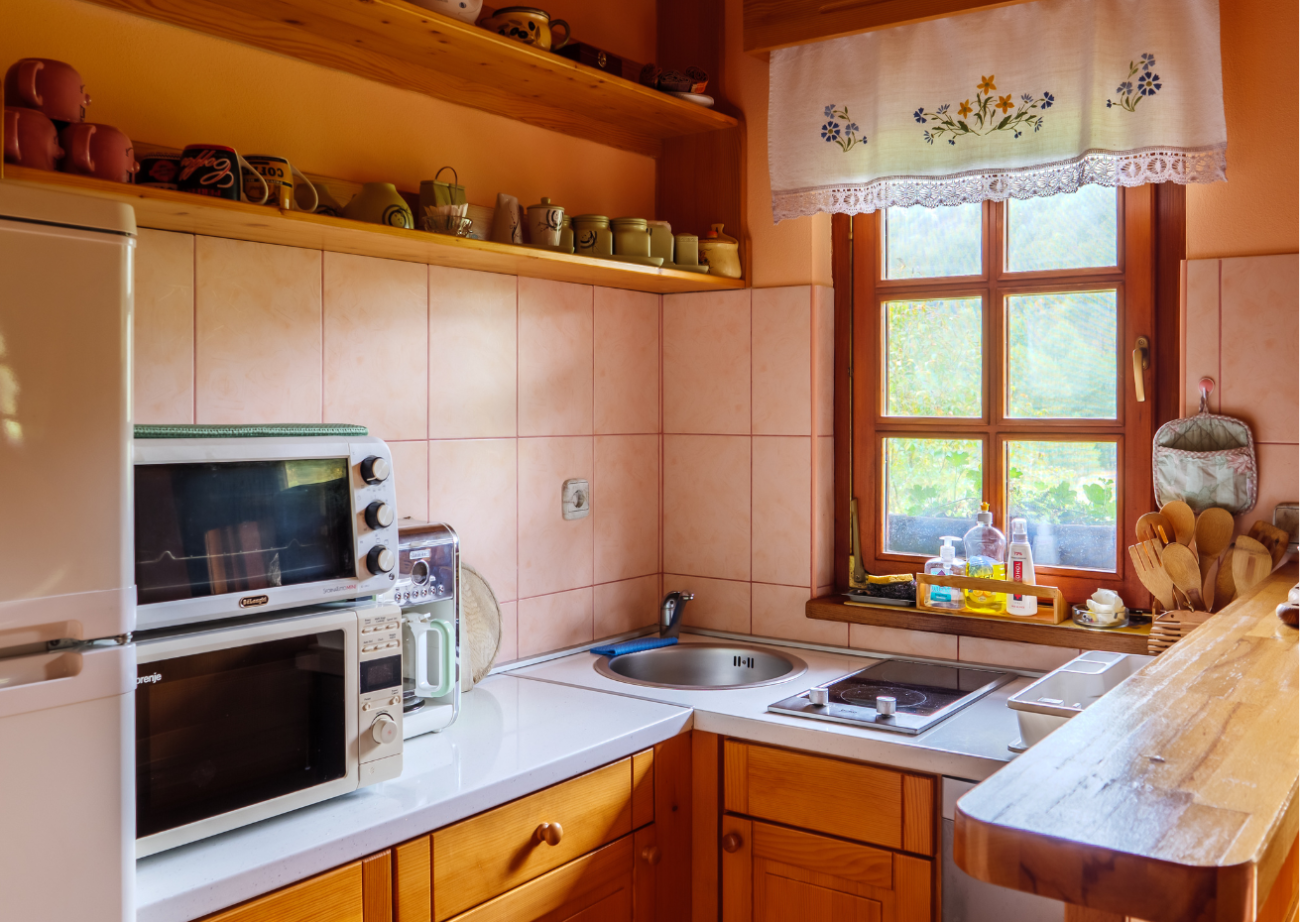 Pored sjenice nalazi se roštilj sa svom pripadajućom opremom (rešetke, kotlić i peka).