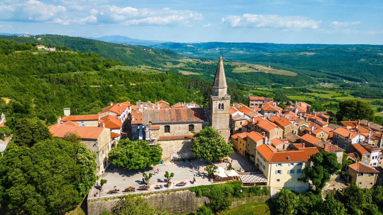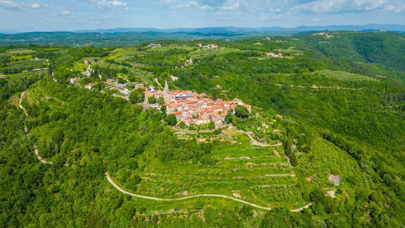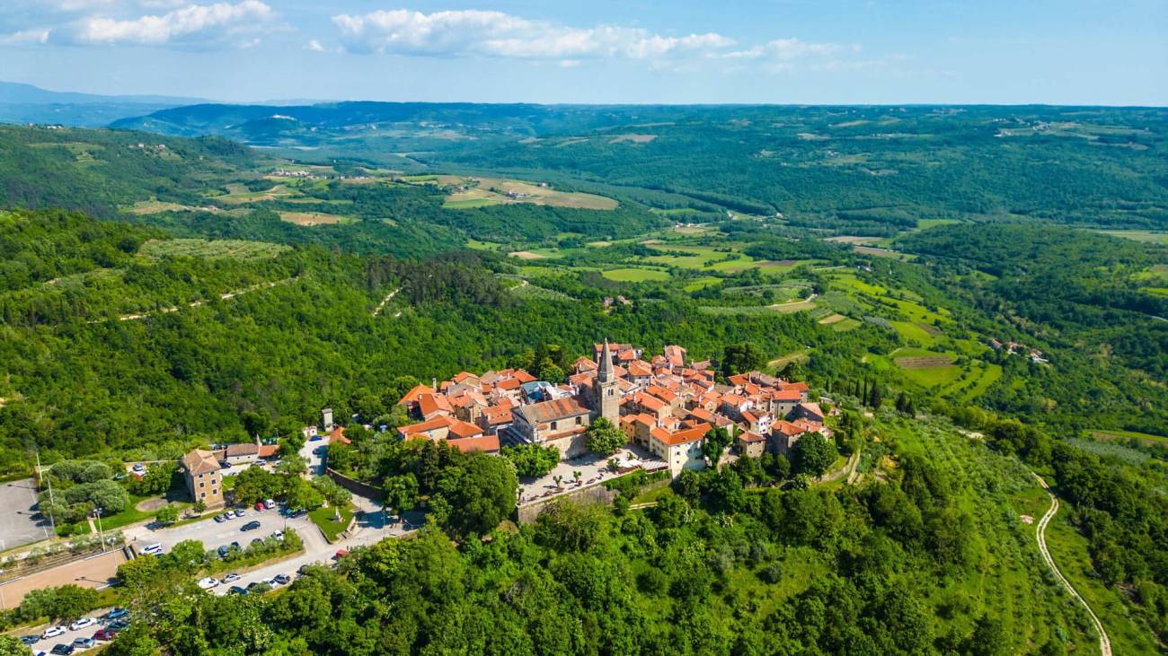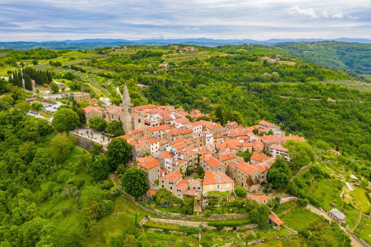 Smješten na brežuljku s kojeg se pruža očaravajući pogled na dolinu rijeke Mirne, Grožnjan je jedan od najšarmantnijih gradića u Istri. Ovaj mali srednjovjekovni grad, poznat kao "Grad umjetnika", pravo je kulturno i umjetničko središte koje odiše poviješću, umjetnošću i autentičnom ljepotom. Njegove uske kamene ulice, bogata povijesna baština i galerije koje krase gotovo svaki kutak čine Grožnjan neodoljivim odredištem za sve koji traže inspiraciju, mir i ljepotu.