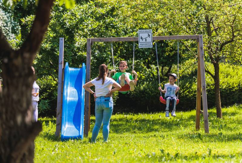 Ova drvena kuća okružena drvećem daleko od znatiželjnih očiju idealna je za obitelji s djecom, a kućni ljubimci su dobrodošli.