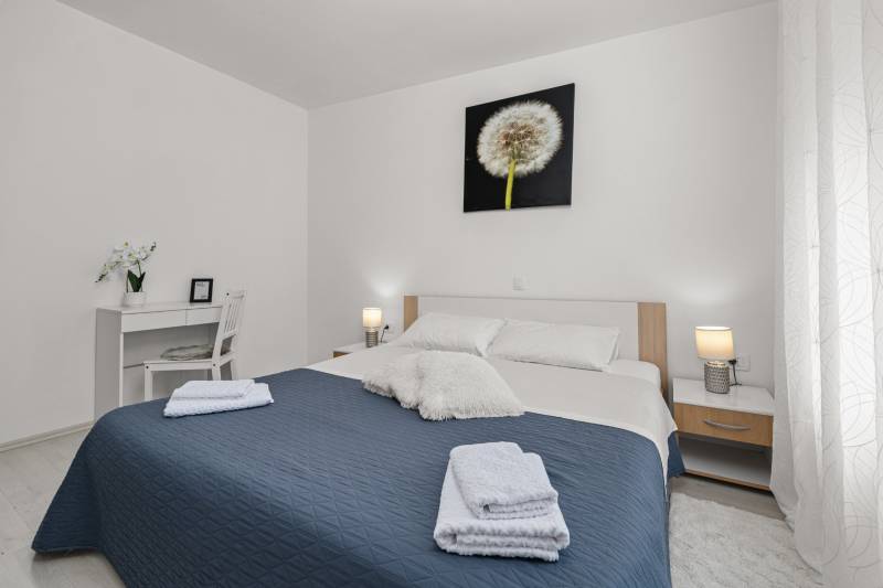 Na gornjem katu nalaze se dvije dvokrevetne spavaće sobe i dvije kupaonice.