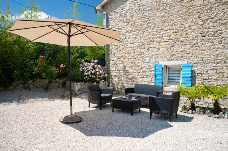 Iza kuće čeka vas prostran, ograđen vrt koji nudi potpunu privatnost i mirnu atmosferu. Ovdje je privatni bazen s šest udobnih ležaljka, vanjski prostor za objedovanje, prostor za roštilj za uživanje u lokalnim specijalitetima i mjesta za opuštanje na suncu ili u hladu.